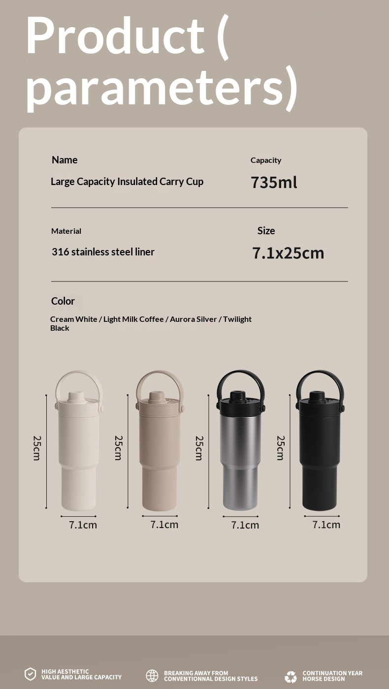Ceramic Inner Liner Insulated Large Capacity Hand-held Straw Cup
